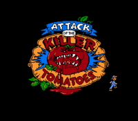Based off the cartoon show of the same name, Attack of the Killer Tomatoes places young Chad Finletter on a quest to make his way past evil mutant tomatoes and stop the crazy Dr. Putrid T. Gangreen from unleashing his Doomsday Tomato. With all the citizens of San Zucchini terrified of the fanged vegetables coming from the sewers and Chad will be on his own to take on the tomato scourge. The doctor doesn't take him lightly however and has sent his special tomato squad; Zoltan, Beefstake, Mummato, Fang, Ketchuck and Tomacho to stop him. The game is a side-scroller platform jumping game where the main method of stopping the killer tomatoes is to jump on them. From that they'll either splatter, run away or transform into smaller tomato bits. Energy Power-ups exist to refill Chad's health.
